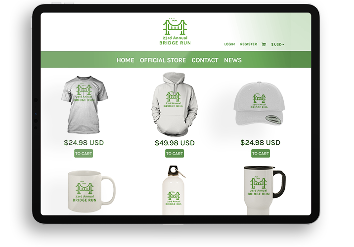 This store is an example of how Merch Instant can be integrated into an existing site for a private club or team.