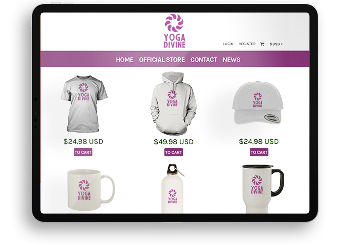 Offer real branded products to your existing audience without the hassle of printing, shipping or fees.